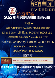 📢📢 如果您有出租房,希望瞭解加州出租房子的法律法規和房東的權益,歡迎來參加由「美國內陸華美協會」和全美排名前100名-內陸出庭大律師Scott Spriggs 聯合舉辦的《加州房東須知的法律常識》
